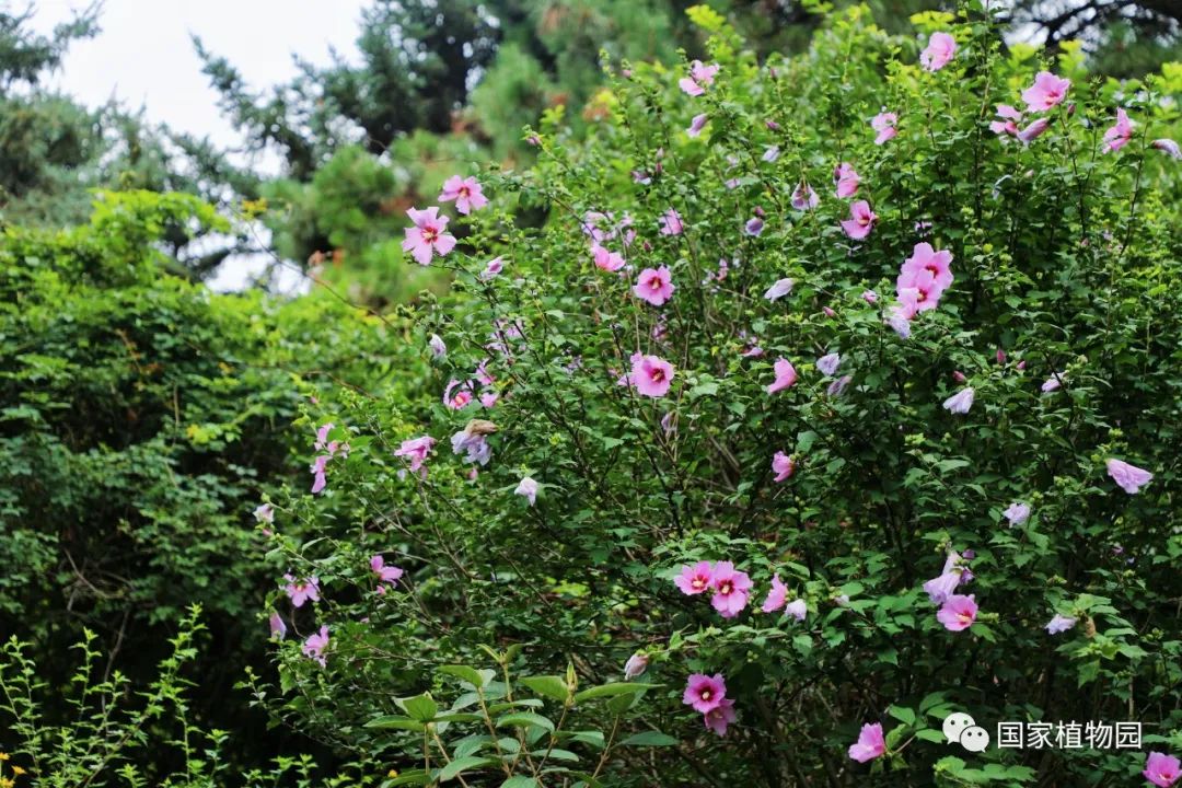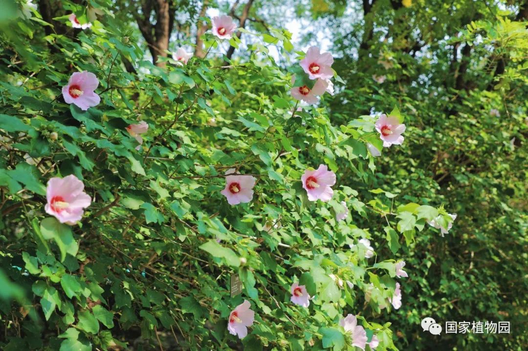 木槿是我国传统的园林花卉,在我国有3000多年的种植史,《诗经·郑风》中有“有女同车,颜如舜华”诗句,“舜华”即木槿花,“舜”同“瞬”,有瞬间、短暂的意思。木槿单朵花朝开暮落,全株花又接连绽放等特点被赋予积极作为、永不言败、坚贞不屈的品格。