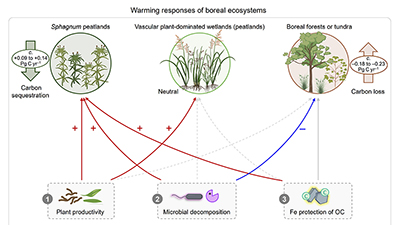 北方生态系统(>45°N)的碳储量约为大气的两倍,而北方地区的增温速率显著高于全球平均水平。基于北方森林和苔原的已有研究普遍认为,气候变暖将通过激活微生物加速北方生态系统碳损失。泥炭藓主导的...