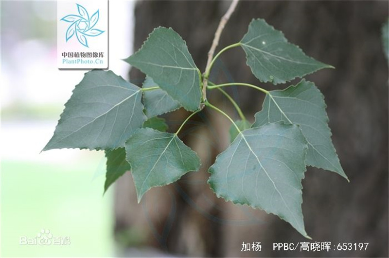 简称加杨。本种系美洲黑杨(Populus deltoides)与欧洲黑杨(Populus nigra)之杂交种,现广植于欧、亚、美各洲;19世纪中叶引入我国。加杨树体高大,树冠宽阔,叶片大而具光泽,夏季绿荫浓密,很适合作行道树、庭荫树及防护林用。同时,也是工矿区绿化及“四旁”绿化的好树种。由于它具有适应性强、生长快等特点,已成为我国华北及江淮平原最常见的绿化树种之一。它的木材轻软,纹理较细,易加工,可供建筑、造纸、火柴杆、包装箱等用材。